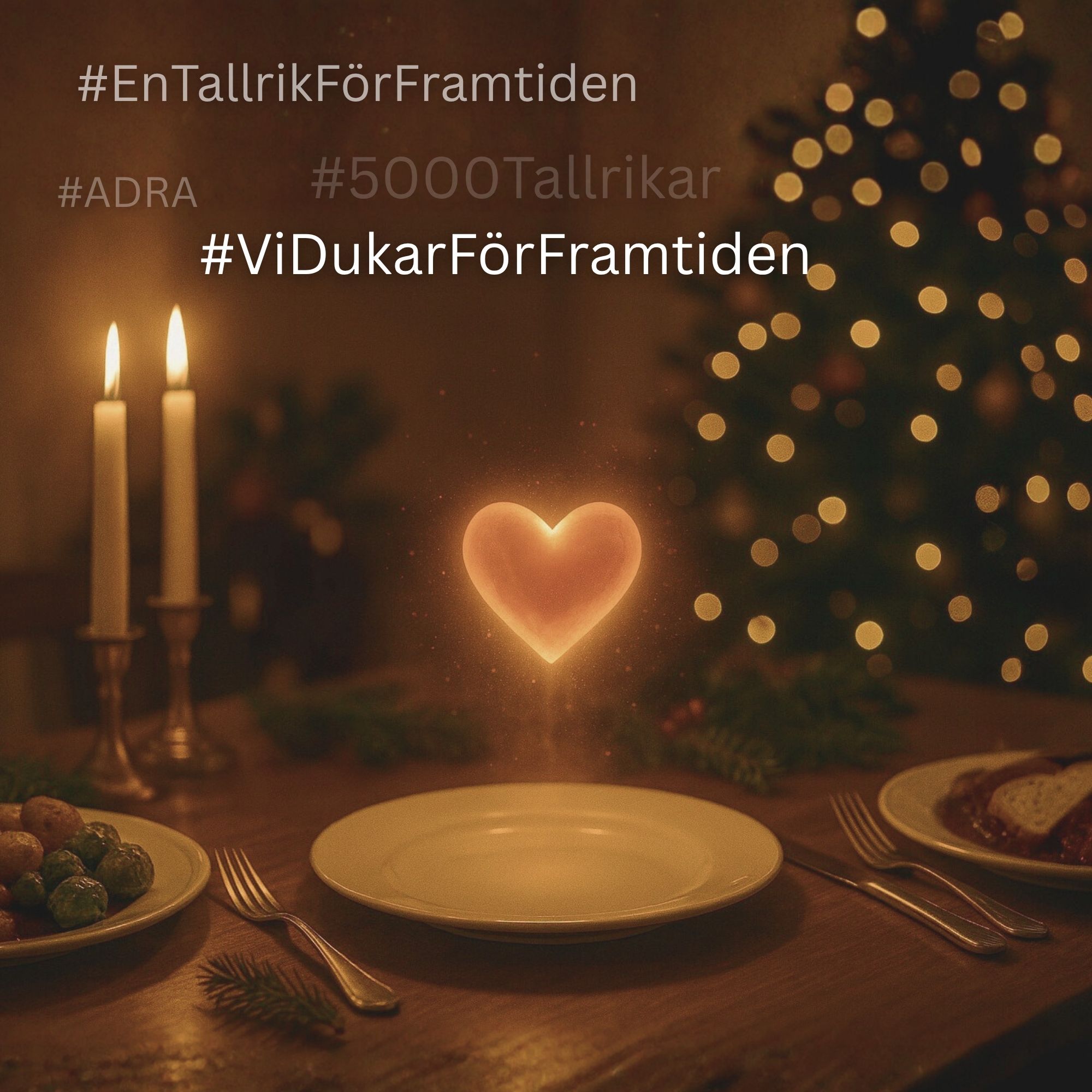 I år vill vi uppmuntra alla att symboliskt duka en extra tallrik vid julbordet – för de som inte har mat. Ta sedan en bild, dela i sociala medier med hashtaggen #EnTallrikFörFramtiden och swisha en gåva.